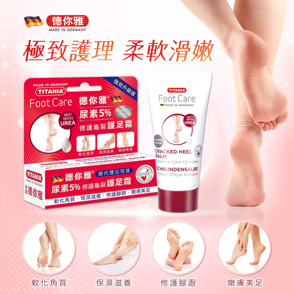 尿素5%是專業護理的最佳黃金比例,維持雙足滋養保濕、柔軟滑嫩,防止粗乾龜裂與脫屑!
