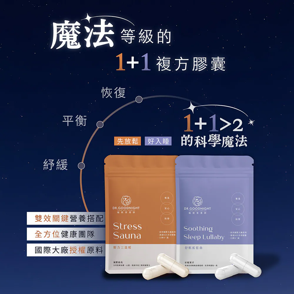 1️⃣ 截斷惡性循環:放鬆身心 + 自在入睡,讓緊繃白天順利銜接安穩夜晚。