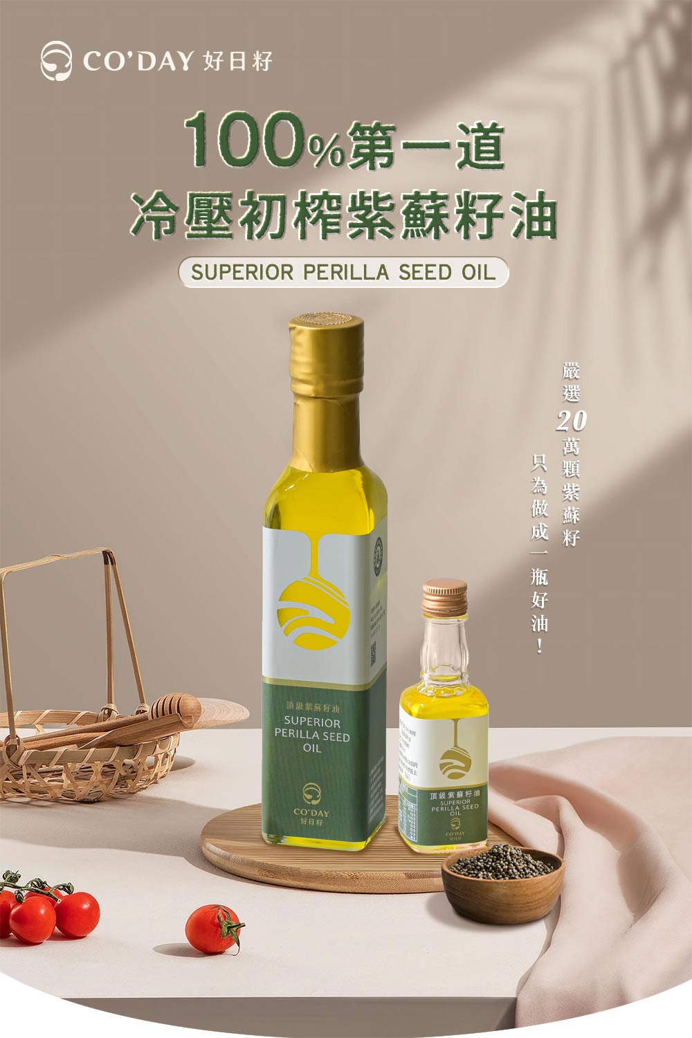 ● 標題關鍵字帶入:Co'day好日籽、100%鮮榨頂級紫蘇籽油、好評紫蘇油開箱、黑白大廚紫蘇油料理(請置入指定關鍵字,並歡迎發揮標題敘述~)