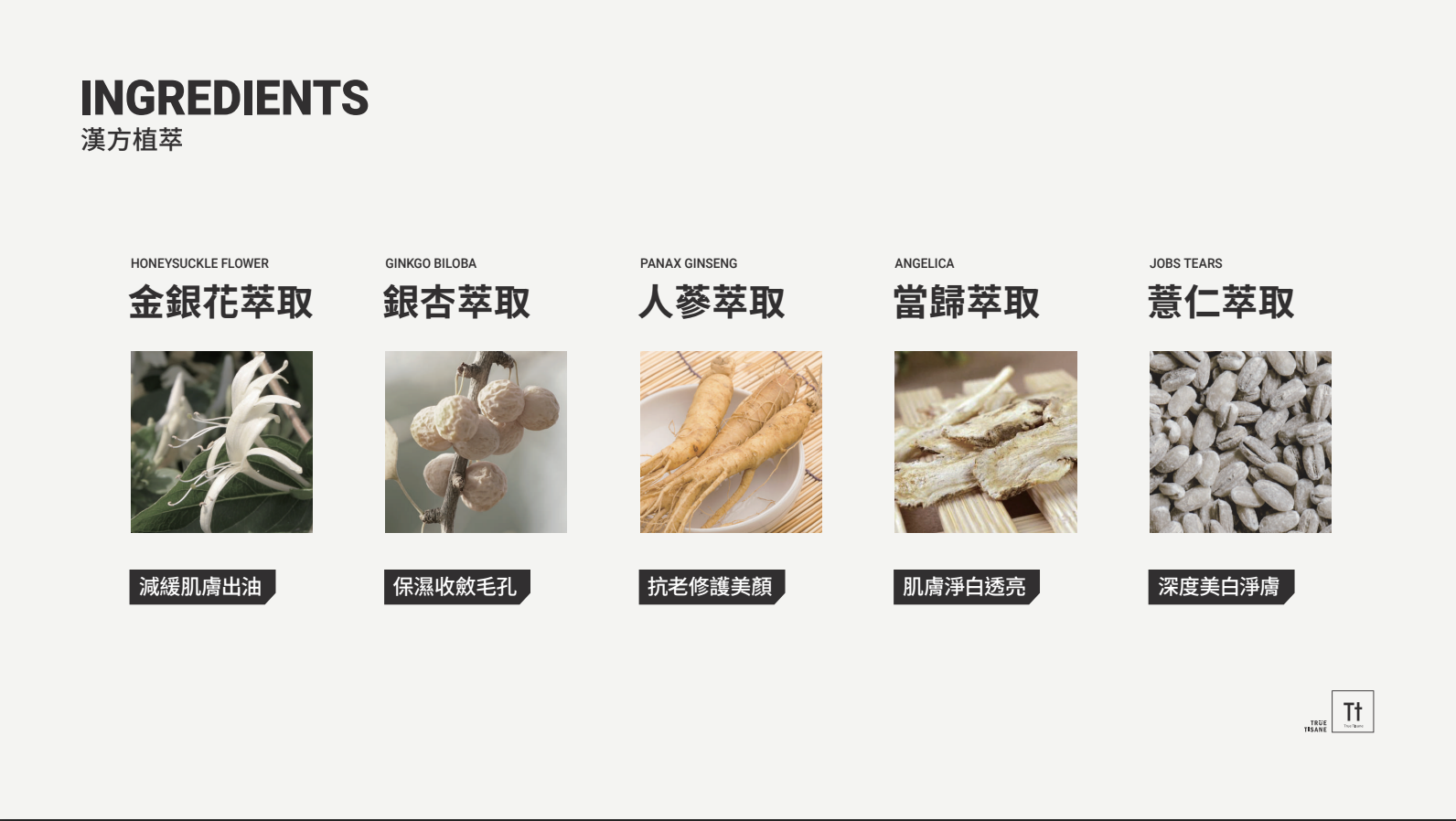 TRUE TISANE嚴格堅守溫和、天然、有效的品牌精神,堅持選用最優質的金銀花、蒲公英漢方作為原材料