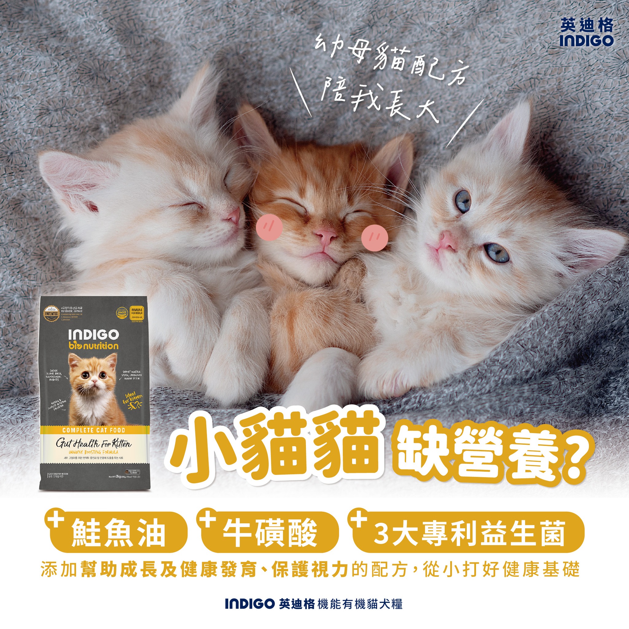 📍INDIGO 英迪格機能有機飼料 幼貓腸胃配方 2kg 一包