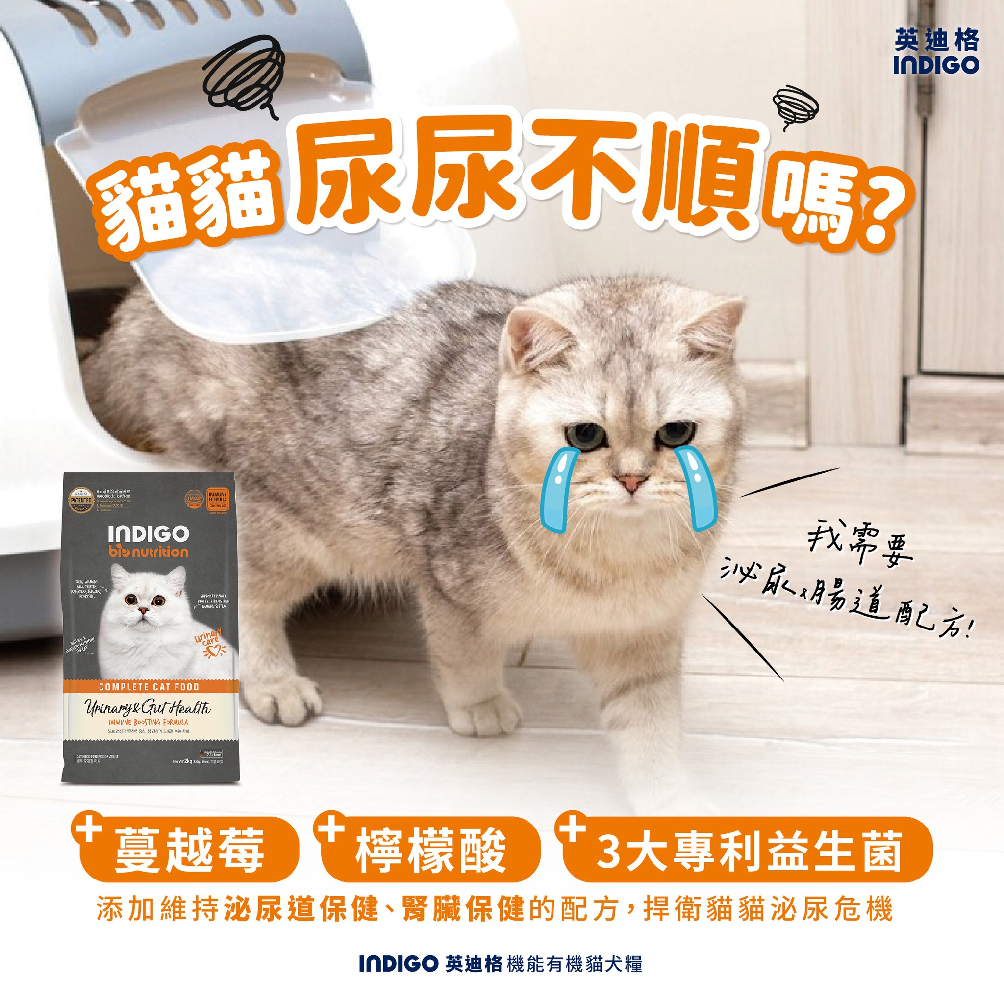 📍INDIGO 英迪格機能有機飼料 泌尿&腸胃配方 貓用 2kg 一包