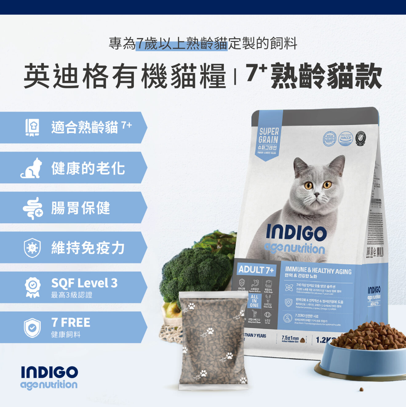 📍INDIGO 英迪格有機飼料 貓用 熟齡貓7+配方 1.2kg 二包