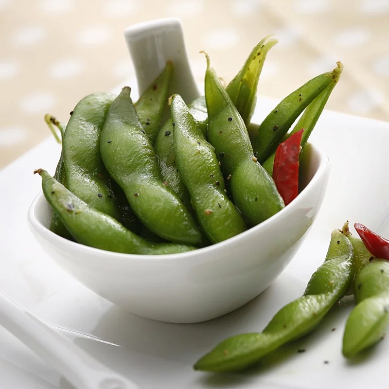 將川燙過的毛豆加入中藥材、蒜頭、辣椒、黑胡椒調製而成