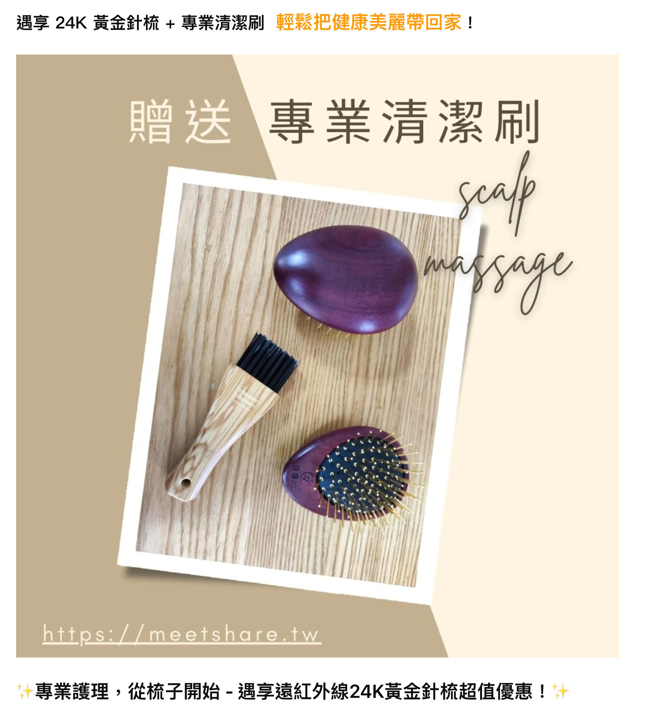 ● 標題關鍵字帶入:MeetShare遇享、專利遠紅外線24K黃金針梳、按摩梳使用分享、分潤平台使用心得(請帶入關鍵字,並設計吸睛標題~)