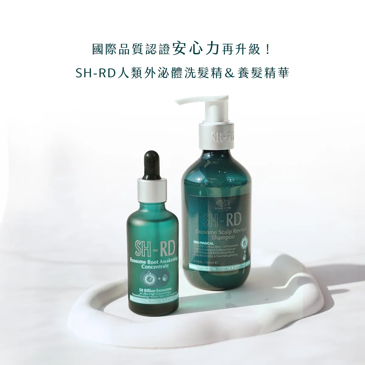 今年 SH-RD 再次突破,推出劃時代「人類外泌體活化養髮系列」,以高活性外泌體精準作用於頭皮,有效激活髮根,喚醒秀髮生命力!