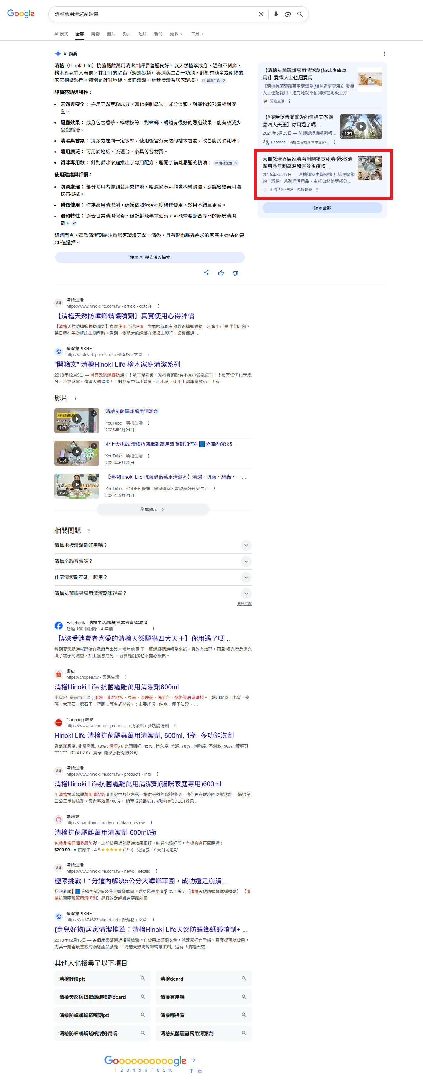 清檜萬用清潔劑評價
