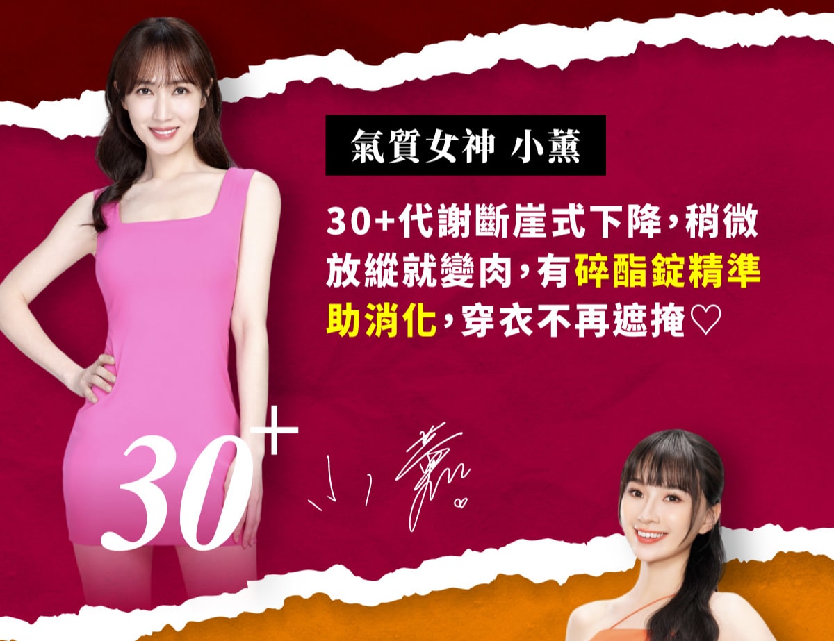 ➡️碎酯錠30+|氣質女神 小薰 代言🌟對抗初老囤積,增肌減酯、消耗加速