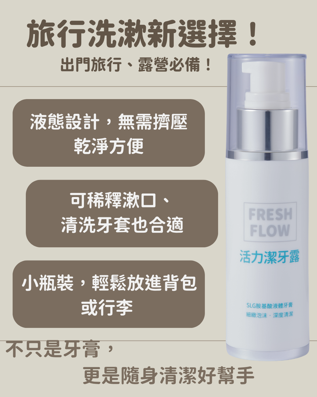 口氣清新一整天、液態深入齒縫,清爽無死角,隨身好攜帶,旅行清新不間斷