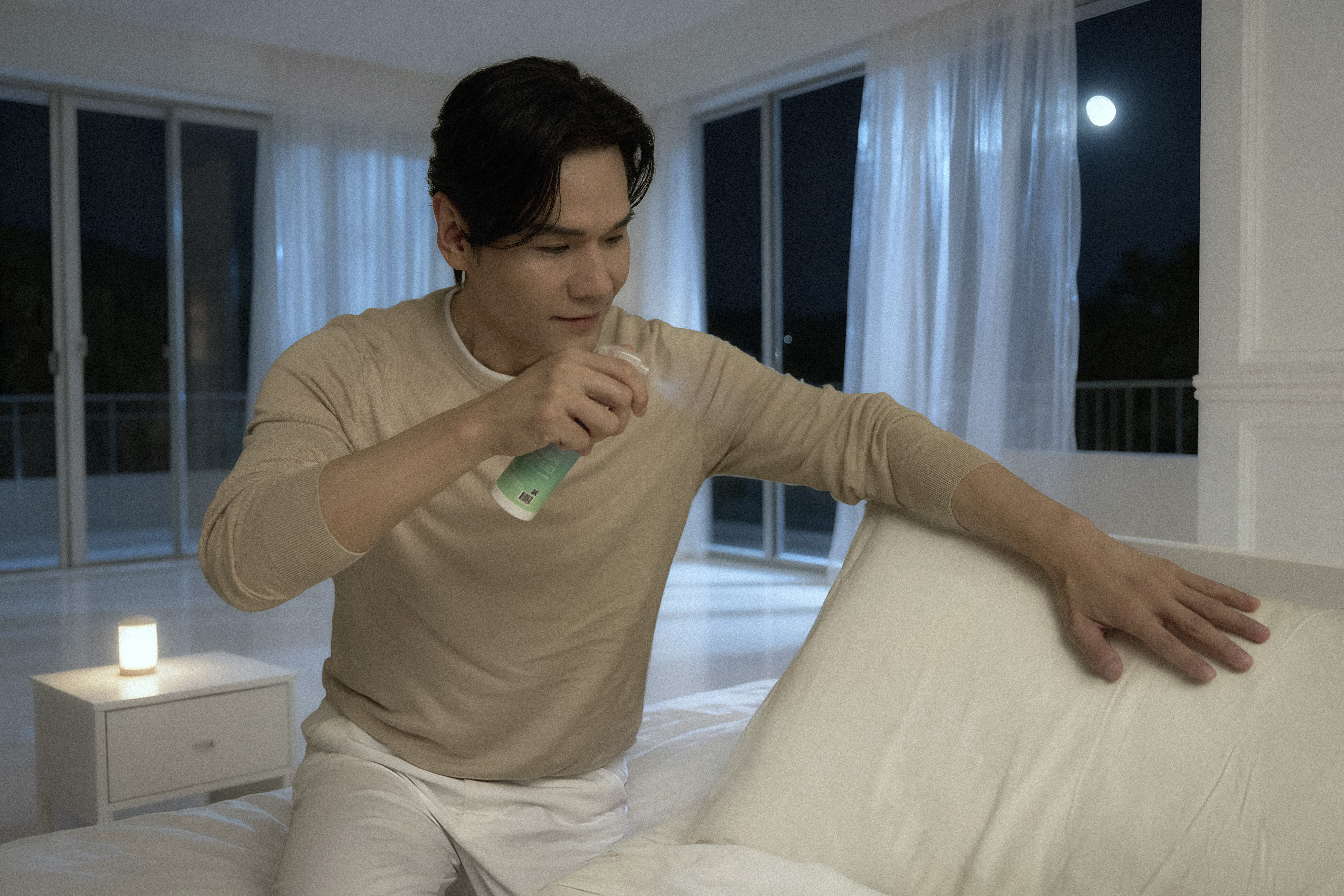 ✔睡眠管理-開啟 #晚安儀式:每晚睡前先對空間噴三下後,深呼吸三次,再噴灑在枕頭邊、被單,為臥室建立「晚安」氣味記憶,讓身體熟悉入夜節奏