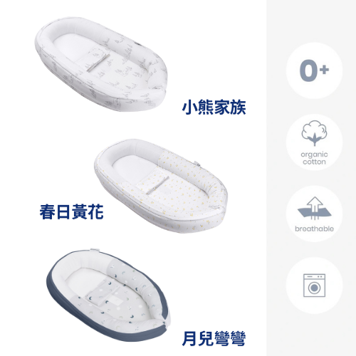 ⭕有機棉親膚安全,呵護肌膚:睡窩選用親膚有機棉材質,柔軟透氣,敏感肌友善。
