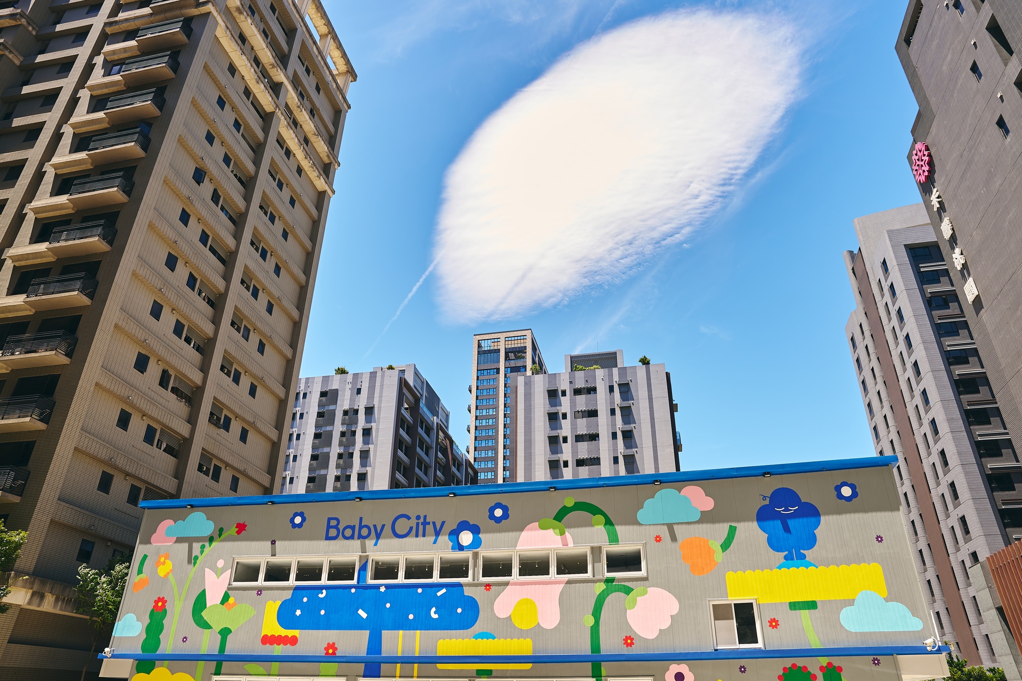 畫面中特別融入品牌吉祥物「小發發」(諧音「小花花」),象徵 Baby City 傳承自經典小花 logo 的陪伴精神。