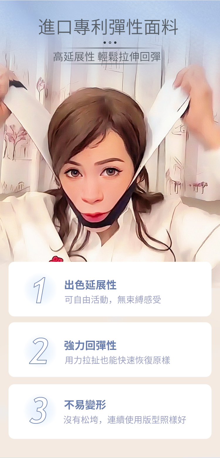 5.不建議睡覺時佩戴原因:許多市面上的瘦臉帶標榜「可以睡覺時使用」,但這些通常只是 軟布包覆設計,毫無真正提拉效果