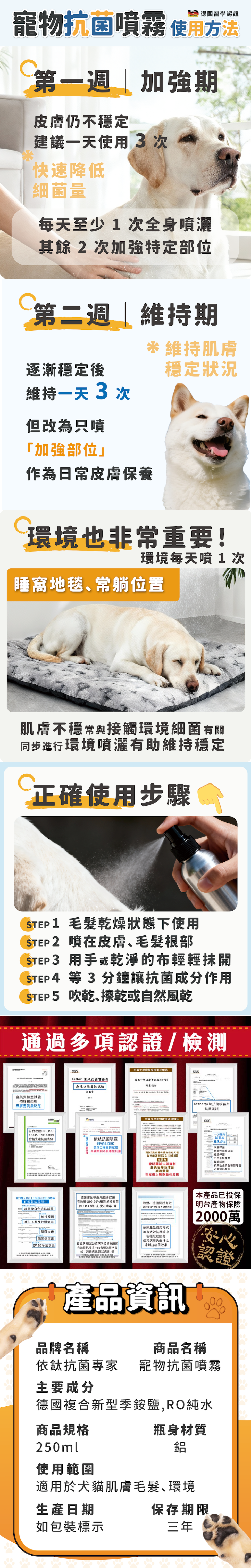 ① 先用「抗菌噴霧」完成日常防護(皮膚/毛髮需要照護的部位)