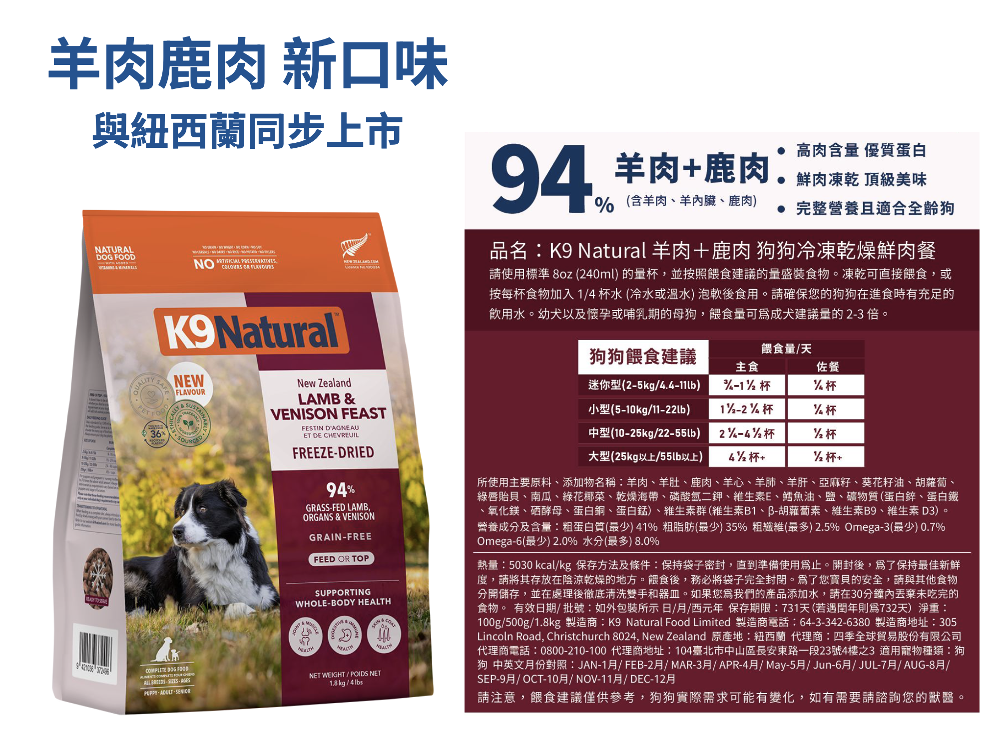 2. 撰文時請強調:全新包裝、主食凍乾羊鹿口味新上市、配方升級、最低94%肉類優質蛋白、適口性更好毛孩更愛、凍乾肉肉更紮實不易碎等。