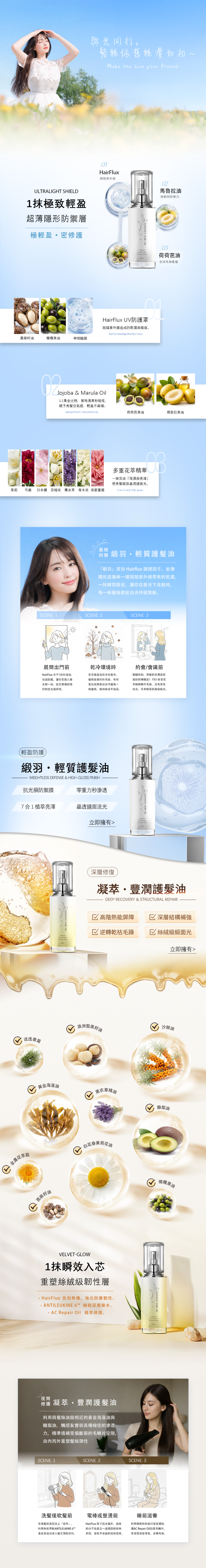 在出門前建立超薄隱形防禦層,以 HairFlux 阻隔紫外線帶來的毛躁與乾澀