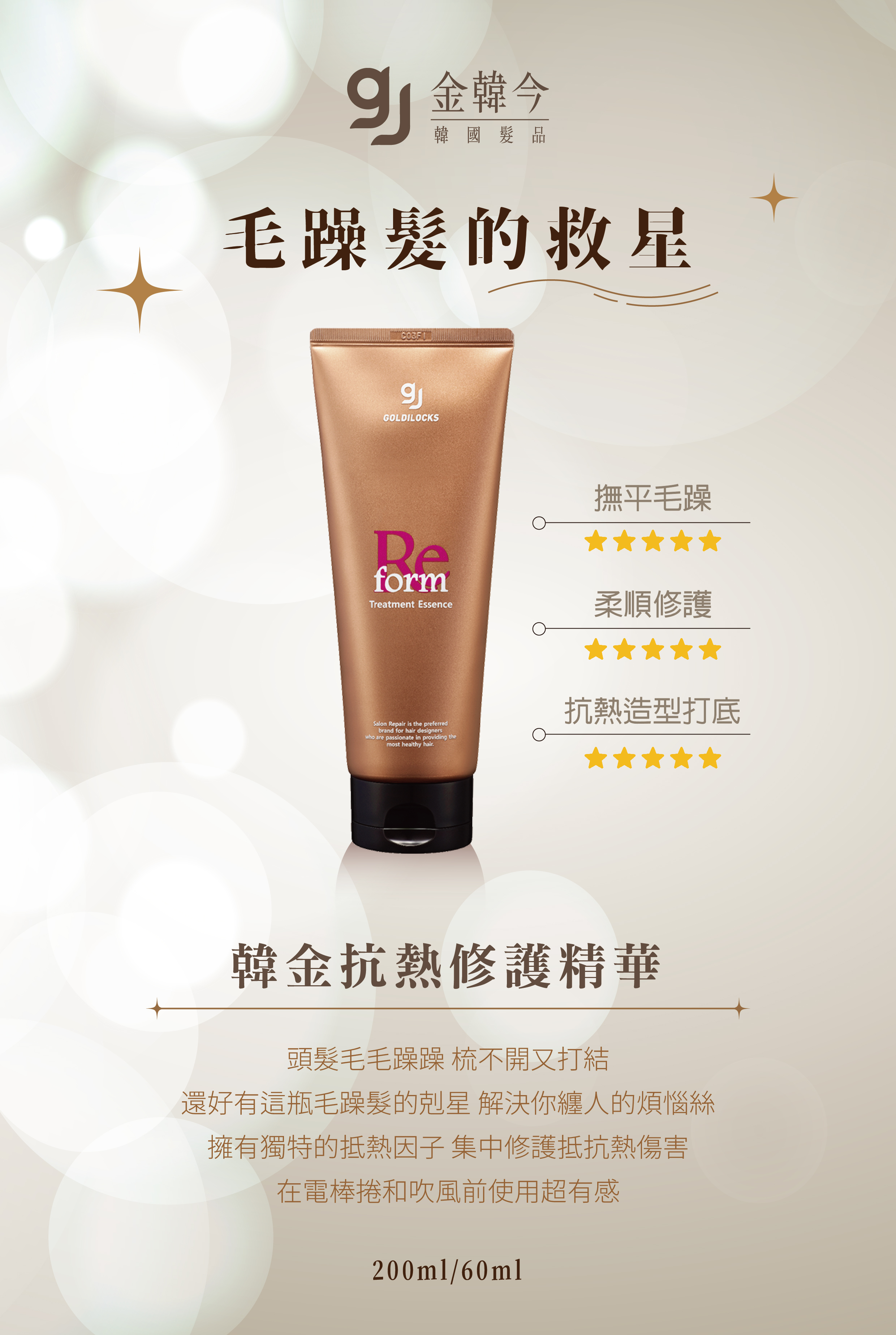 韓金抗熱修護精華為主打產品,撰寫順序請先寫此產品再接續分享髮膜。