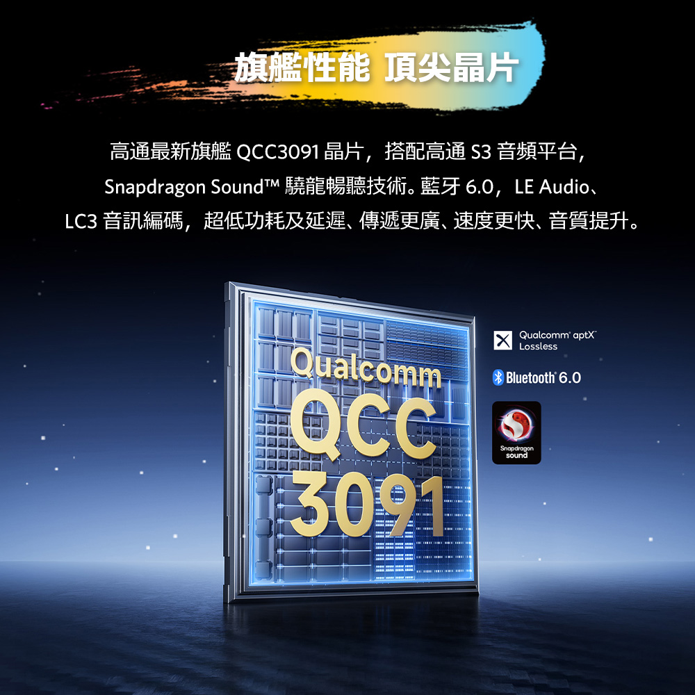 • 高通晶片|採用高通最新 QCC3091晶片