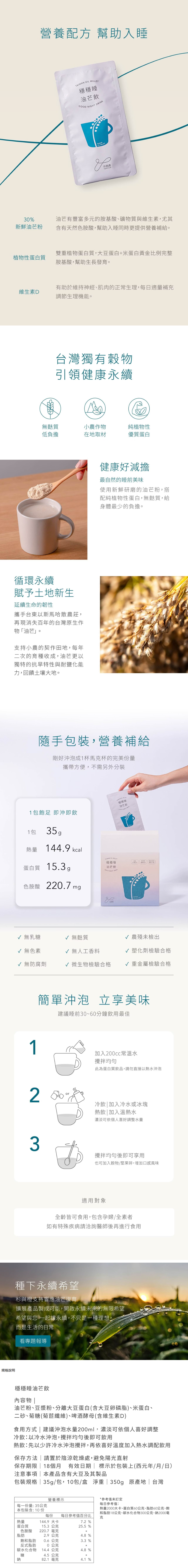 🥚以台灣油芒、大豆蛋白及米蛋白的優質植物蛋白質,無添加人工色素與防腐劑,簡單提供日常營養補給。