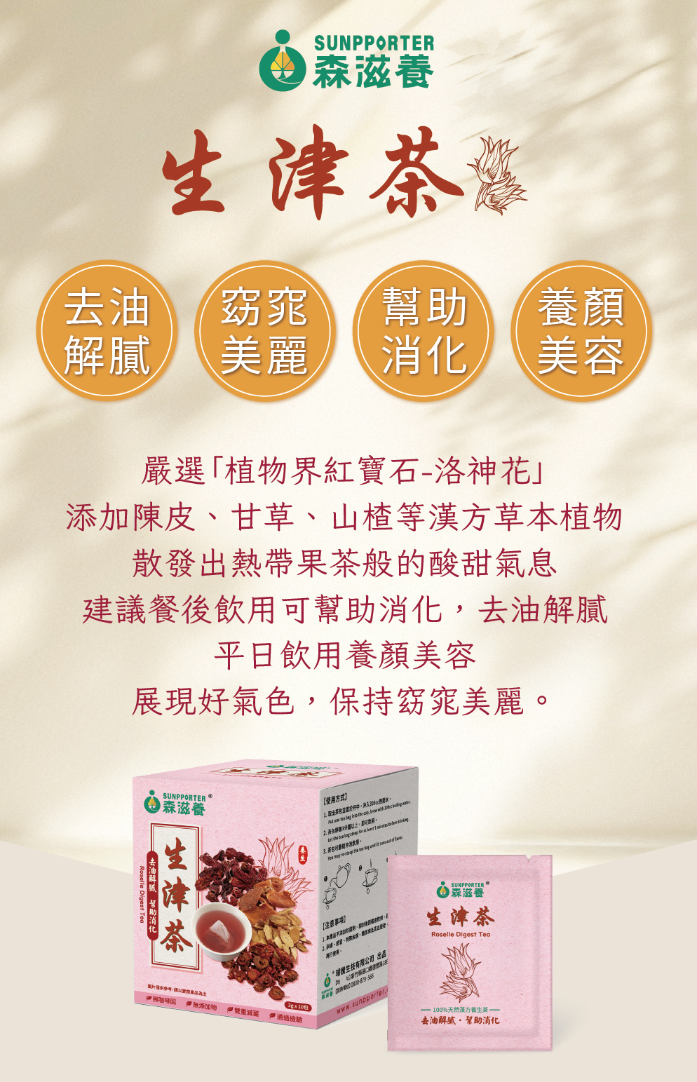 ● 「生津茶」建議使用文字:洛神花/幫助消化/去油解膩/生津止渴/窈窕美麗/使排便順暢