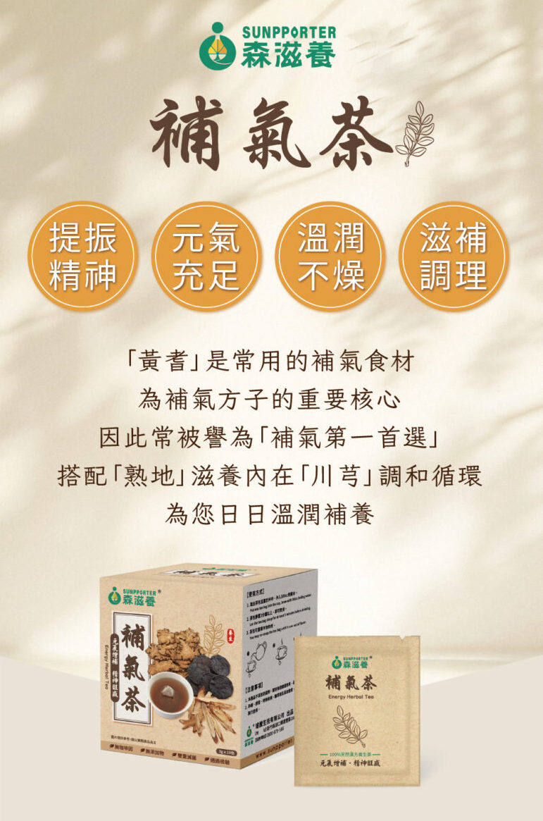 ● 「補氣茶」建議使用文字:黃耆/提振精神/補充元氣/滋補強身/病後與產後補養