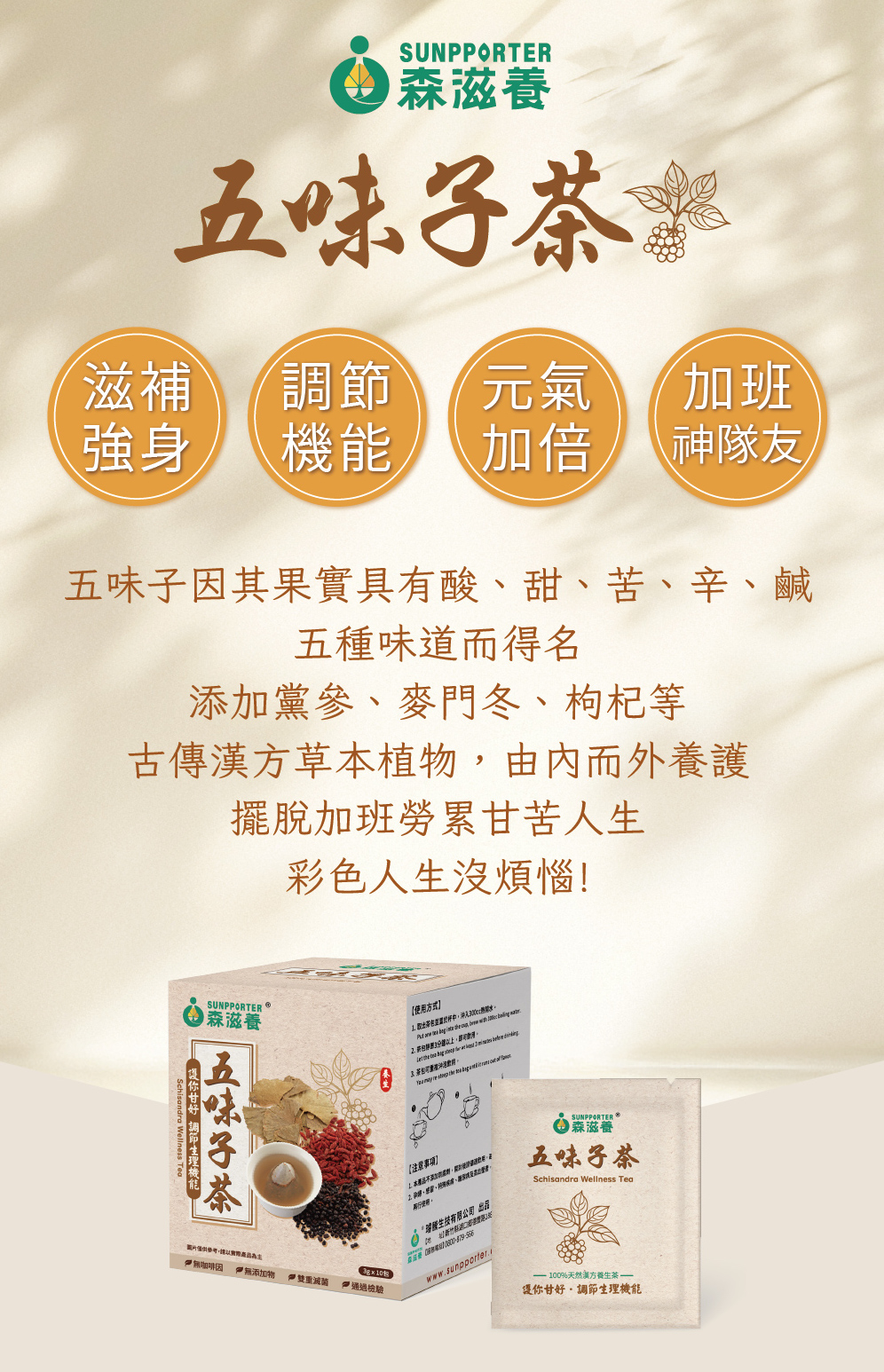 ● 「五味子茶」建議使用文字:五味子/護你甘好/不甘苦/滋補強身/調節生理機能