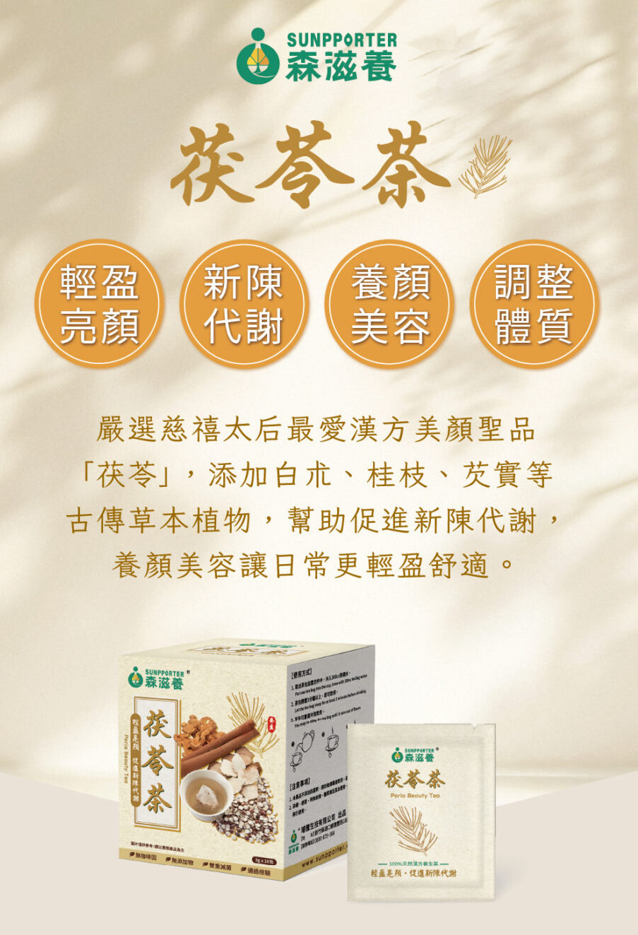 ● 「茯苓茶」建議使用文字:茯苓/輕盈舒適/養顏美容/促進新陳代謝