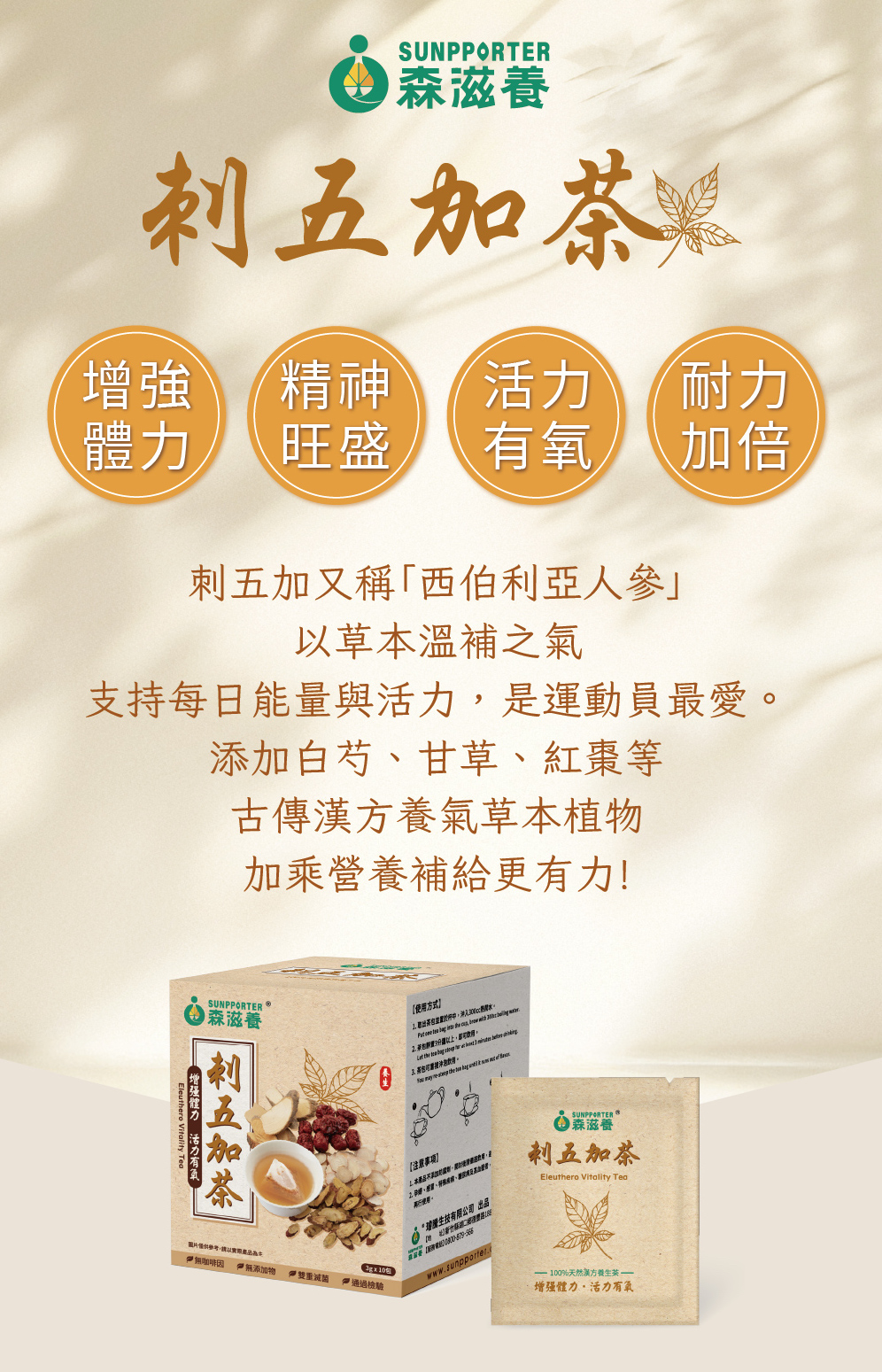 ● 「刺五加茶」建議使用文字:刺五加/西伯利亞人參/增強體力/活力有氧/能量補給