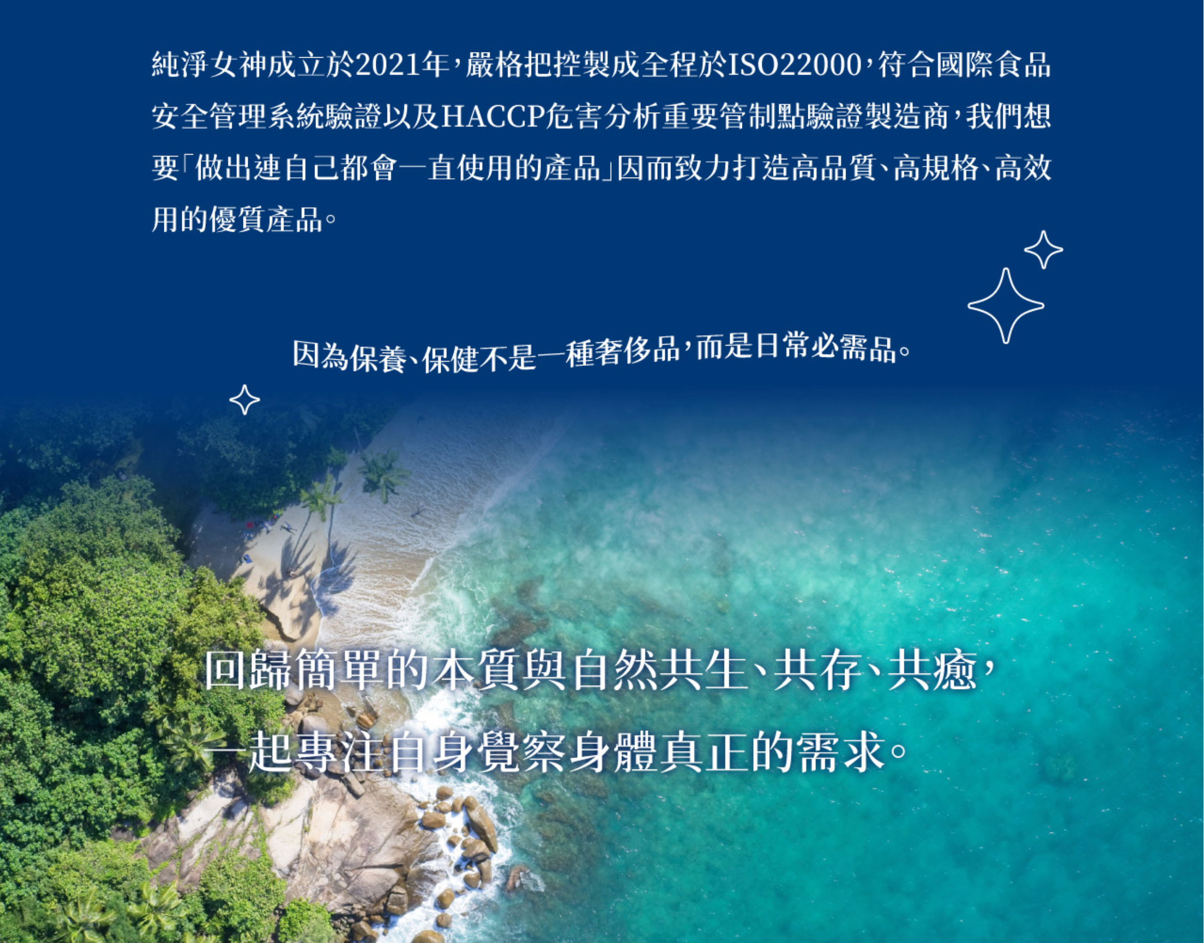 傳達純淨、健康的品牌承諾,每項產品皆通過國家級SGS檢驗