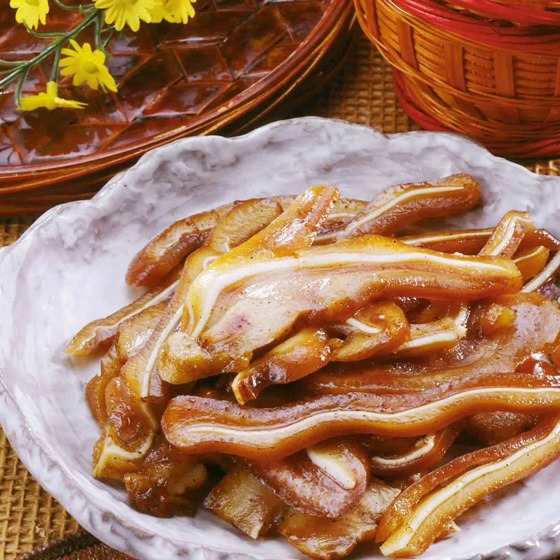 採用新鮮豬耳滷製而成的,是居家食用、下酒菜的好選擇。