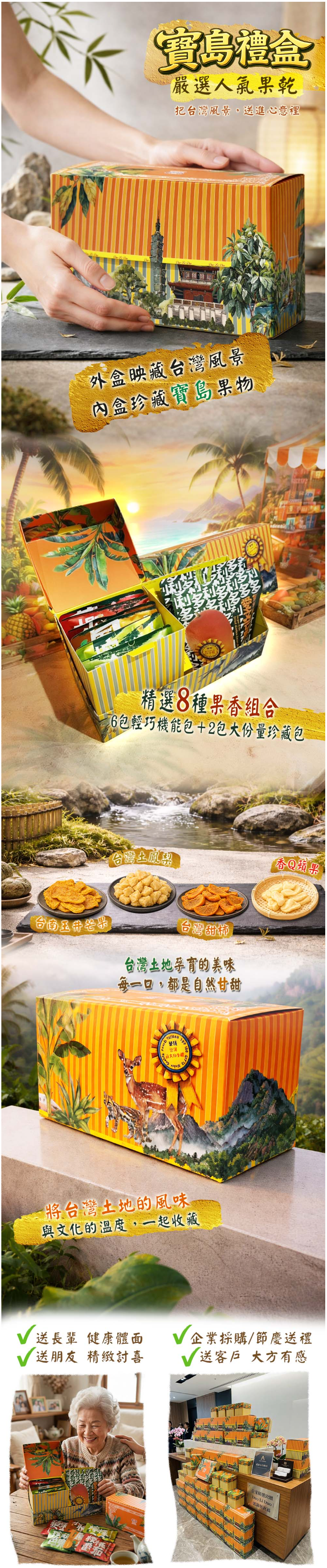 ● 試用產品:寶島禮盒(內含:2入果乾(S)+6入機能包,品項隨機出貨),價值$980元