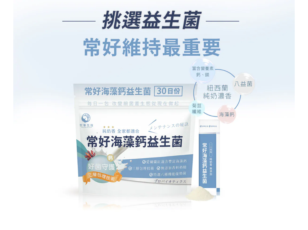 ● 標題關鍵字帶入:世華生技、常好海藻鈣益生菌、機能益生菌、益生菌推薦