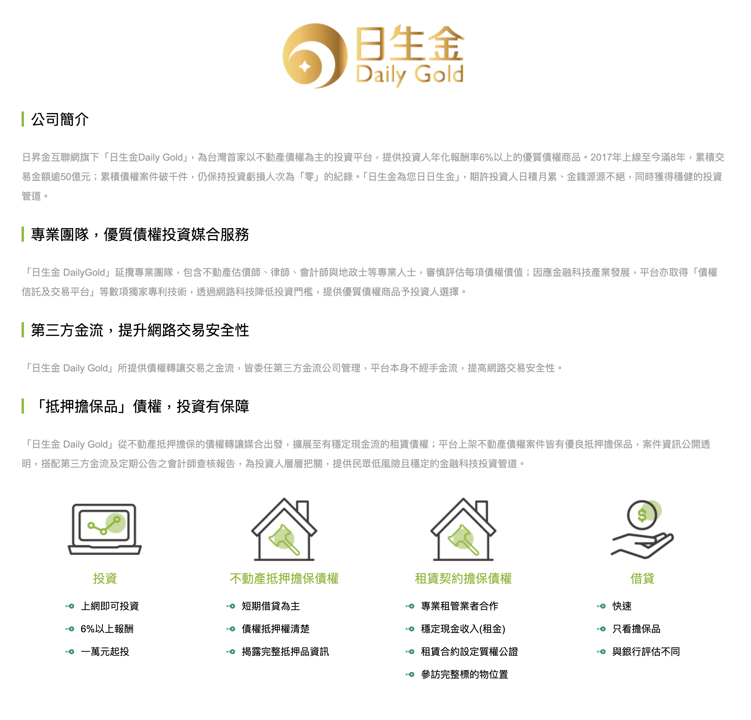 Google商家:日生金Daily Gold/年化報酬率6-8%/投資首選/包租公