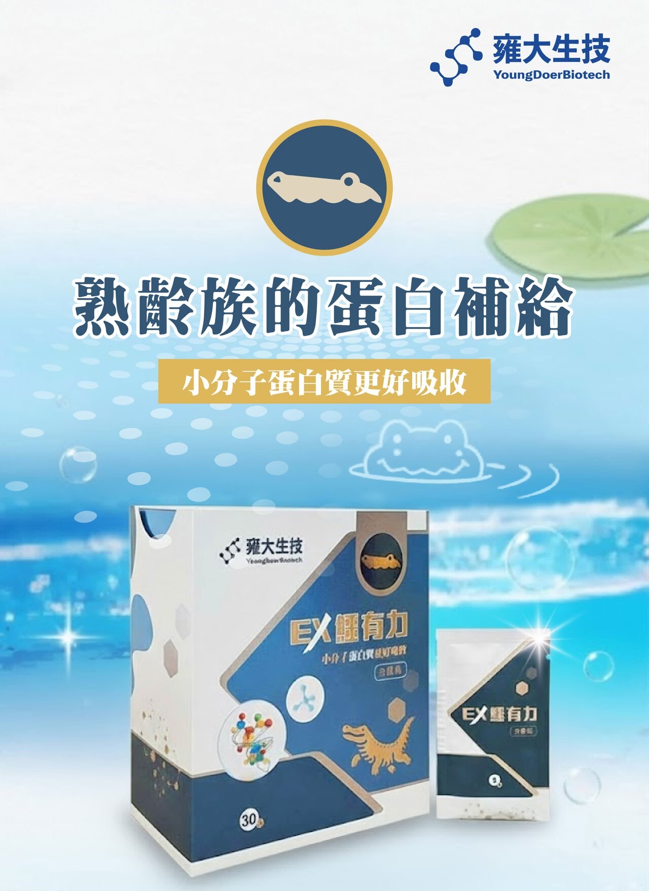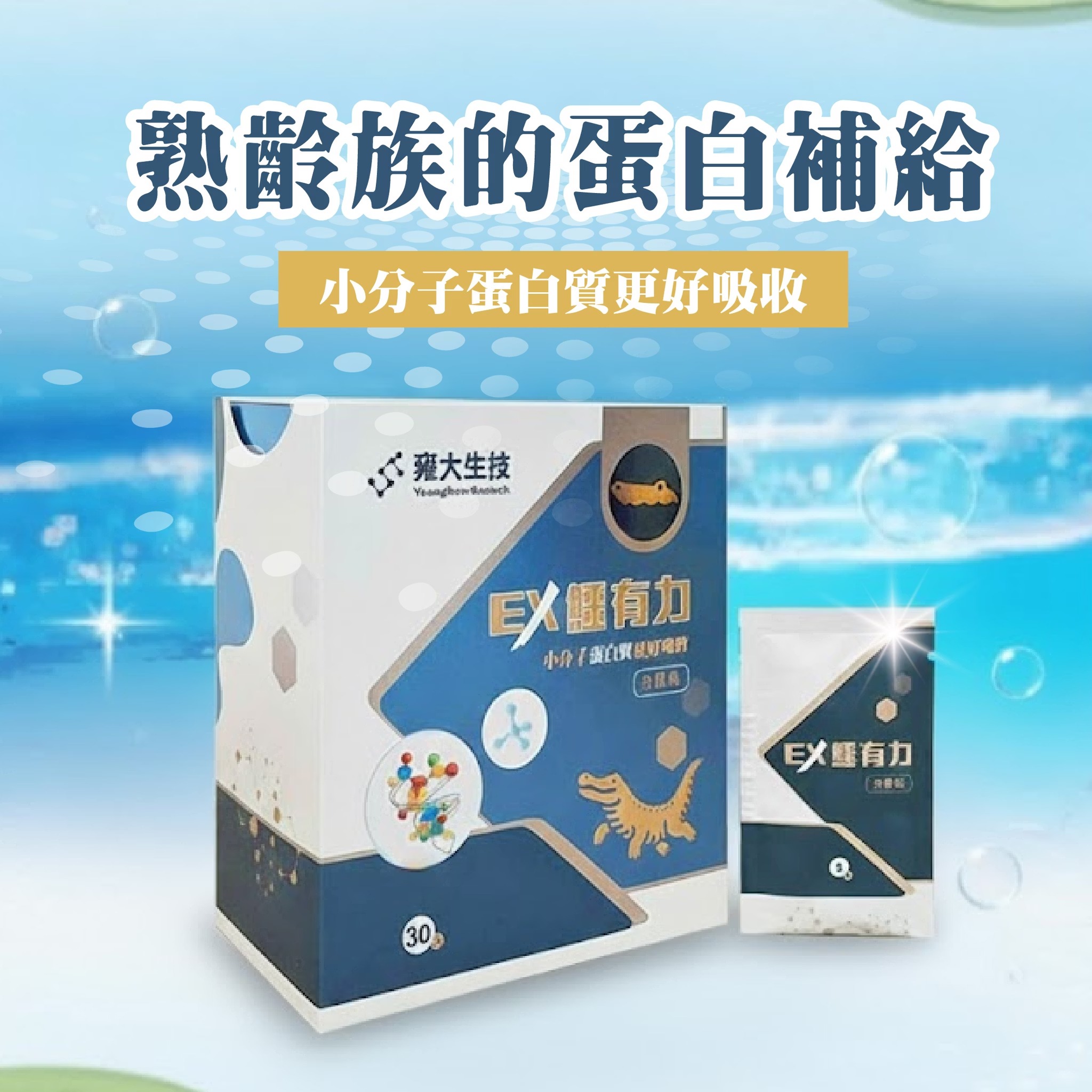 【雍大生技】宅配試用|全新升級❗熟齡族的蛋白補給就靠它👴!小分子蛋白好吸收,一天一包有感補充🐊!EX鱷有力(30包),總價值$3100元,招募5名