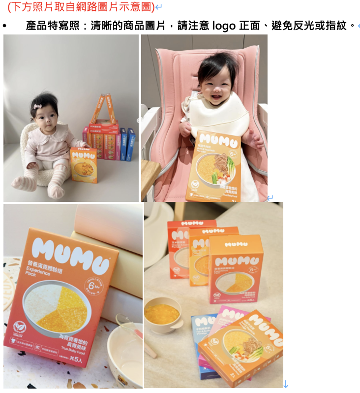 ● 標題關鍵字帶入:MUMU、寶寶粥、常溫副食品、米其林、100%無添加潔淨標章(請依您的體驗的品名發揮創意,加入適當流暢的標題關鍵字)