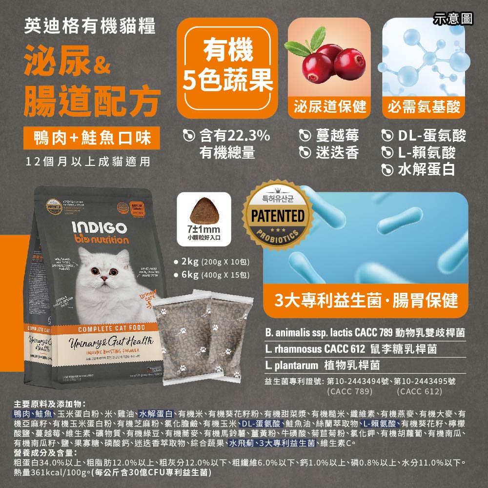 📍INDIGO 英迪格機能有機飼料 泌尿&腸胃配方 貓用 2kg 一包