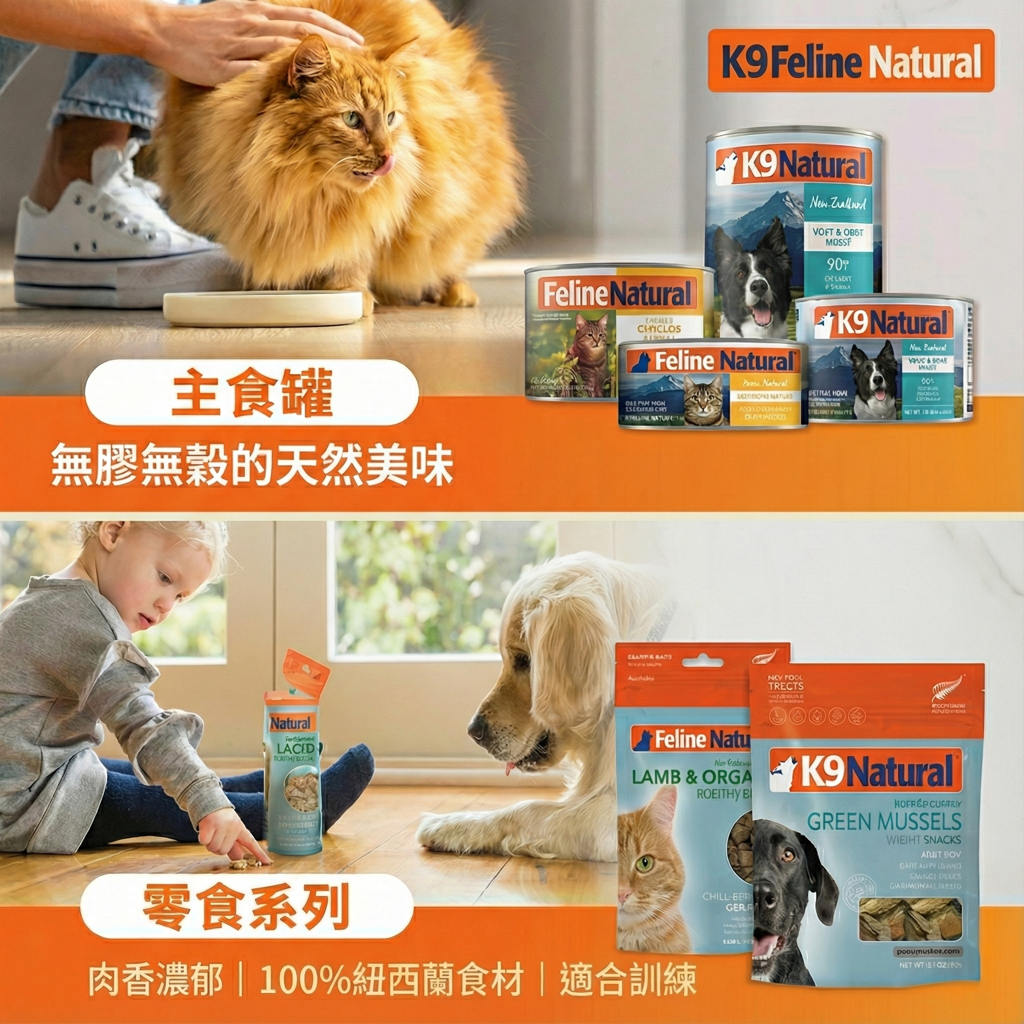 【K9/Feline Natural】喵喵汪汪都欲罷不能的鮮食凍乾🥩✨來自紐西蘭的自然奢華🐶🐱冷凍乾燥輕加工法,還原鮮肉美味,每一口都阿姆阿姆停不下來!🌿頂級食材狗狗、貓咪體驗組二擇一,總價值$1290-1650元,招募10位